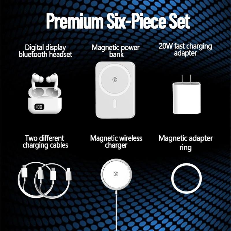 6-in-1 Magnetic Charging & Bluetooth Headset Set Experience ultimate convenience with this versatile 6-in-1 set. designed to meet all your charging and audio needs.